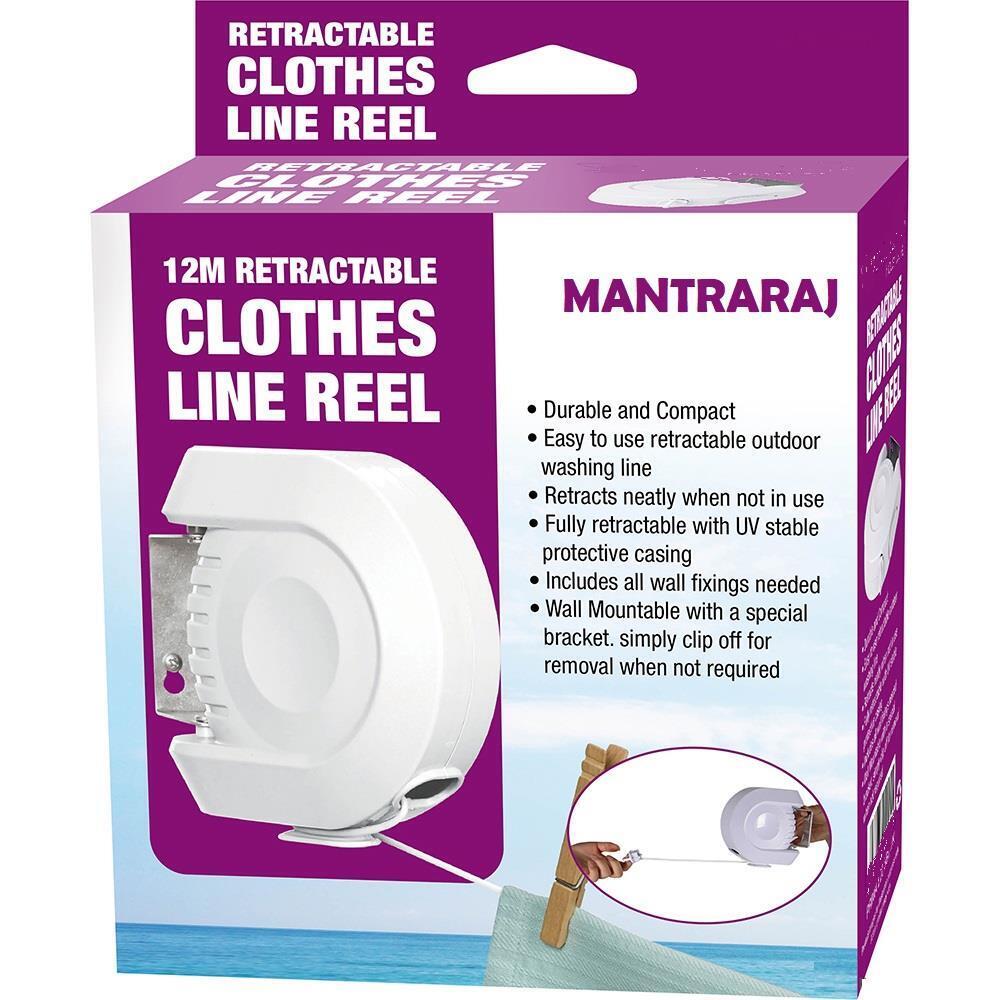 12m Retractable Clothes Line Washing Reel Garden Wall Mounted Outdoor Drying