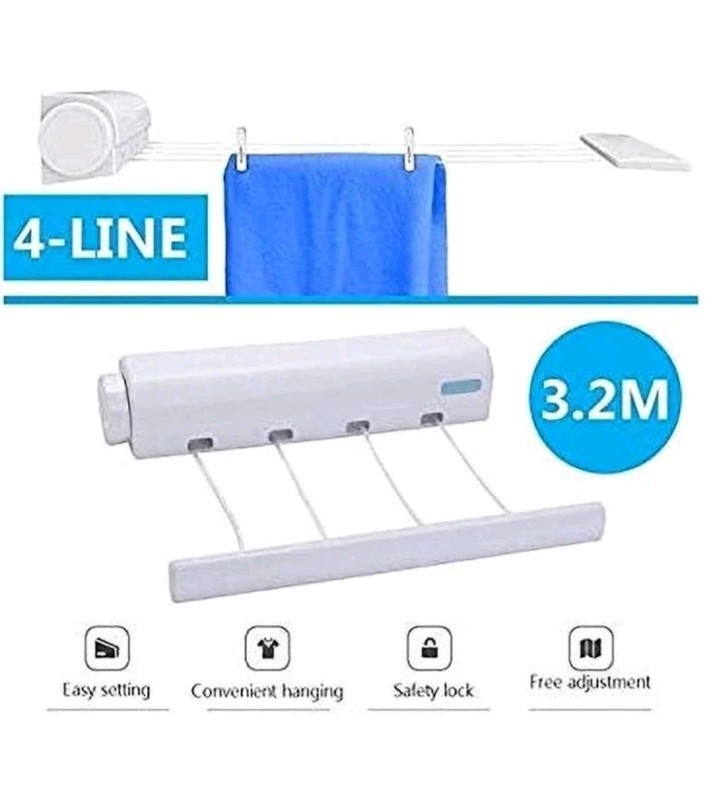 Retractable Clothesline, Wall Mounted Washing Line Extendable, 4 lines x 3.2 m