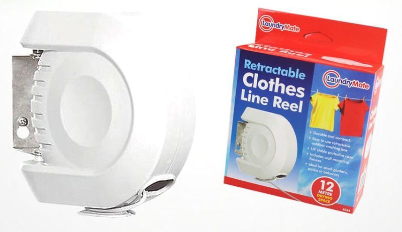12m Retractable Clothes Line Washing Quick Easy Garden Flat Wall Mounted White