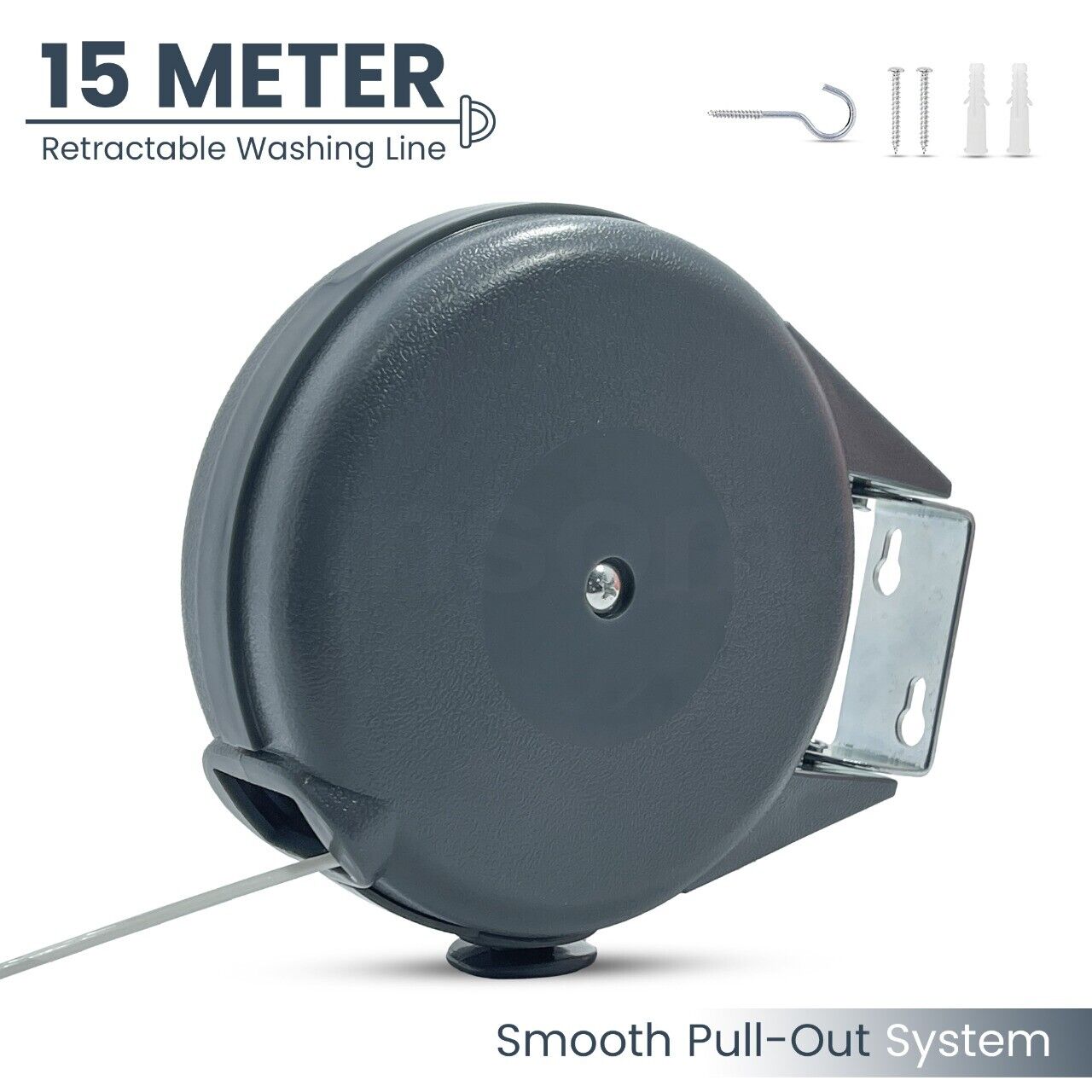 15m Heavy Duty Retractable Washing Line Indoor Outdoor Wall Mounted Dryer