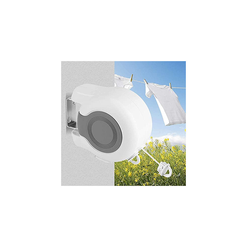 Storage Retractable Clothesline For Indoor And Outdoor Use Heavy Duty Stainless Steel Rustproof Washing Line Adjustable Length Wall Mounted Drying Rope Laundry Solution (White, 9X9X4cm)