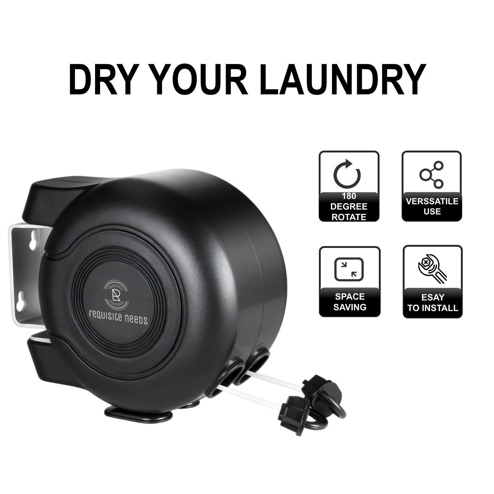 SA Products Wall Mounted Twin Cable Retractable Washing Line - 2x15m Long Clothes Line - 30m Extendable Laundry Drying String Line Heavy-Duty Plastic & Polyvinyl For Indoor & Outdoor Use - Black