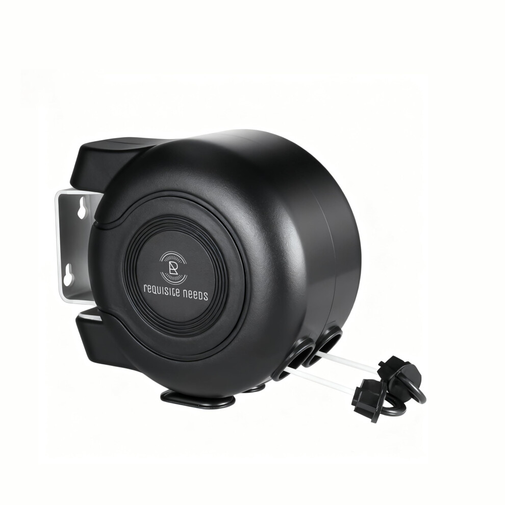 REQUISITE NEEDS 30M Wall Mounted Twin Cable Retractable Washing Line, Black, Heavy-Duty Plastic & Polyvinyl, 2x15m Length, Indoor Outdoor Laundry