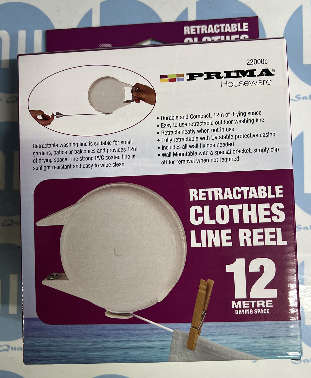 12m Retractable Clothes Line Washing - Garden Flat Wall Mounted - White