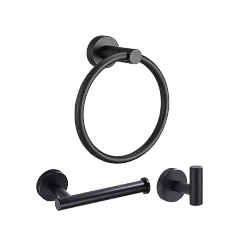 ZZHYTANG 3-Piece Bathroom Hardware Set, Stainless Steel Bath Accessories Set, Wall Mounted Towel Ring, Toilet Paper Holder, Robe Hook, for Bathroom, Kitchen, Hotel(Black)