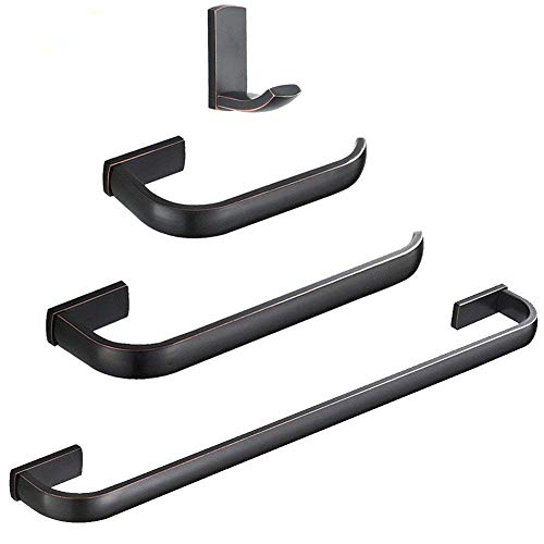 WINCASE Oil Rubbed Bronze Bathroom Accessories, Hardware Set, Towel Bar Set 24 Inch Brass Brushed Bronze 4 Piece Wall Mounted Toilet Paper Towel Holder