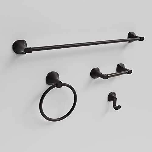 BGL Bathroom Accessory Set, Matte Black Adjustable Expandable Towel Bar 4-Piece Bathroom Hardware Set Wall Mounted Robe Hook Toilet Paper Holder Towel Ring Towel Bar
