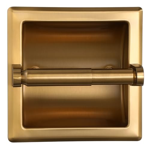 POKIM Wall Mounted Toilet Paper Holder with Back Mounting Bracket Heavy Duty Brushed Stainless Steel Brushed Gold Finish 15x15cm