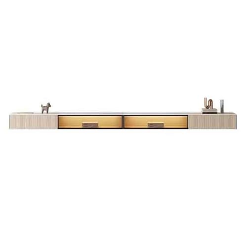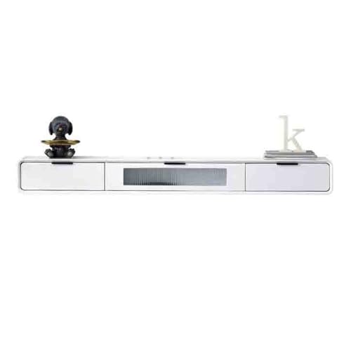 lskdnrufh Floating TV Stand for Wall Mounted TVs Console Solid Wood Units Entertainment Center with Storage Drawers(White,220x24x20cm)