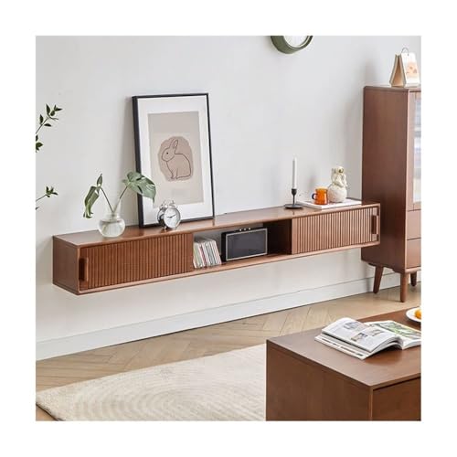 lskdnrufh Home Wood Floating TV Entertainment Center,Wall Mounted TVs Stand with Open Storage Shelf and Sliding Doors(Walnut,180 * 25 * 25cm)
