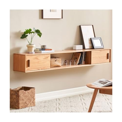 lskdnrufh Home Wood Floating TV Entertainment Center,Wall Mounted TVs Stand with Open Storage Shelf and Sliding Doors(Nature,180 * 25 * 25cm)