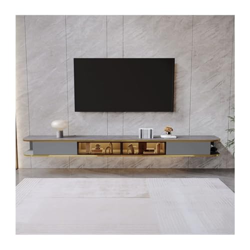 lskdnrufh Floating TV Stand with 2 Drawers, Wall Mounted TVs Cabinet Slate Countertop Shelves,Entertainment Media Console for Living Room(Gray,200x30x23cm)