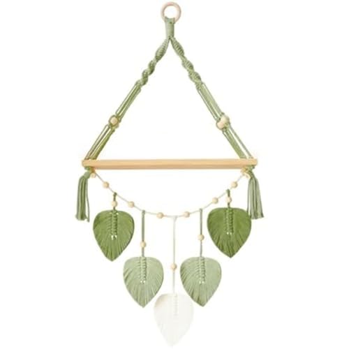 Knnuey Macrame Wall Hanging Shelf-Boho Wall Plant Hanger Shelves with Handmade Woven Leaves, Rustic Wood Storage Display Shelf