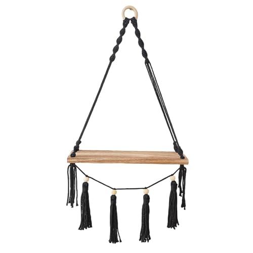 MEIBAOGE Floating Shelf Bohemians Handwoven Wall Mounted Plant Holder Wood Storage Rack with Tassels for Home Decorations
