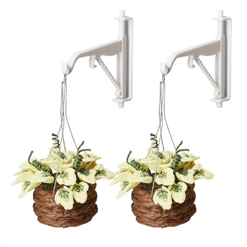 Odoria 1/12 Scale Dolls House Miniature Plants in Hanging Basket and Bracket 2Pcs Mini Wall Plant Hook Miniatures Dollhouse Decoration Accessories, Light Green