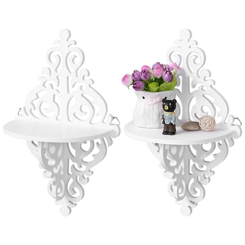 Floating Shelves 2Pcs Carved Wall Mount Shelf 8.9x4.7in Decorative Corner Shelf Ornament Plant Wall Shelf for Living Room Bedroom Floating Shelves