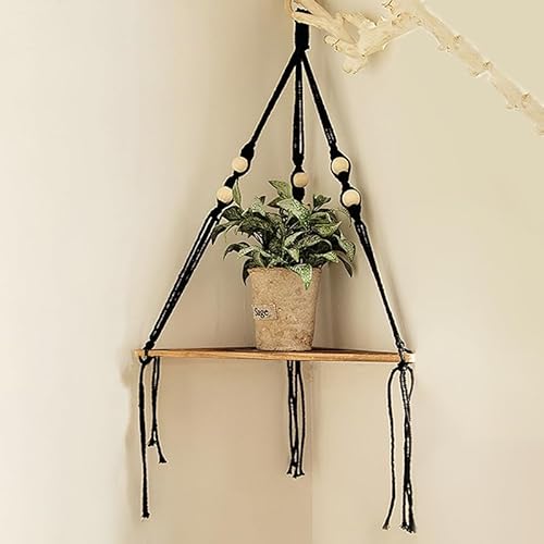 DDWRGD White Wall Shelf Hanging Shelf Wooden Floating Shelves Boho Wood Corner Shelf Wall Mount Plant Holder for Wall Decoration (Black Single Layer)