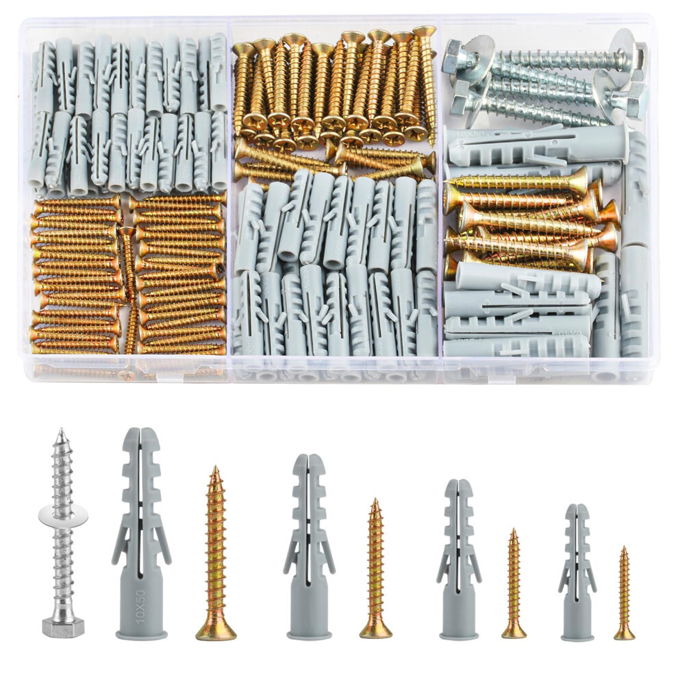 228 Assorted Screws and Wall Plugs Set, Masonry Plasterboard Wall Plugs and Screws for Brick Concrete Plasterboard Fixings for TV Bracket
