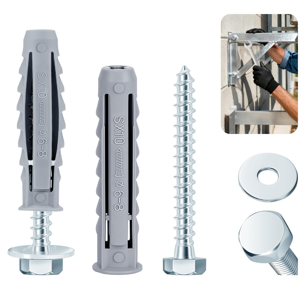 10 Pcs Wall Fixings M8X60 Half-Thread Wall Plugs for TV Bracket with Expansion