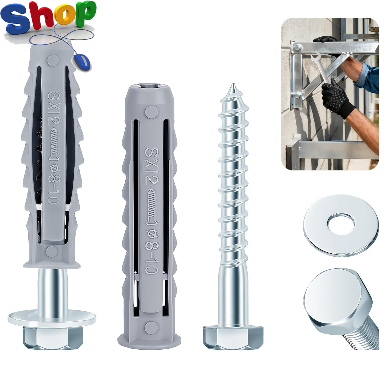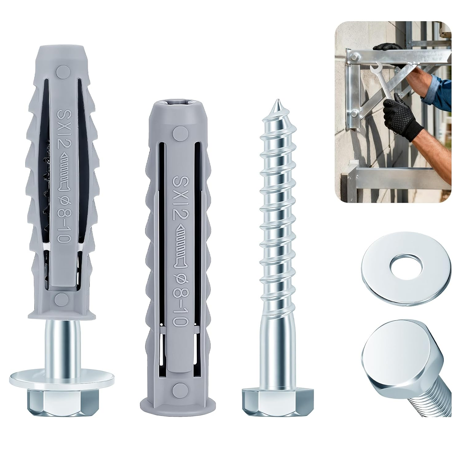 ddckj 12 Pcs Wall Plugs for TV Bracket Fixings M8X80 Wall Bolts with Expansion Plugs and Washers for Mounting Television, Sky Shelf Bracket, Water He