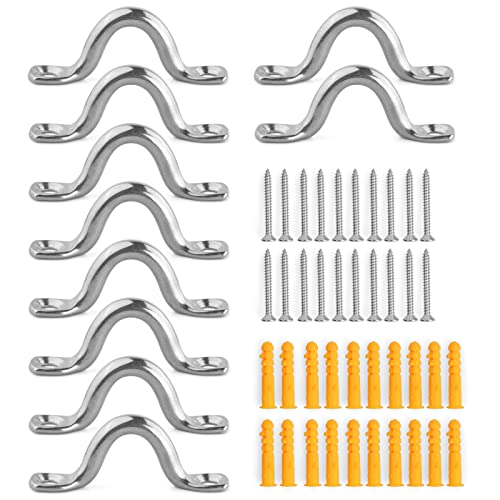 Catime 10 Pcs 304 Stainless Steel Boat Top Pad Eye, M6 Pad Eye Strap Plate, Kayak Deck Loops Tie with 20 Pcs Screws and 20pcs Wall Plugs, 6mm Boat Accessories for Ships Canoe Yachts Caravans Rigging