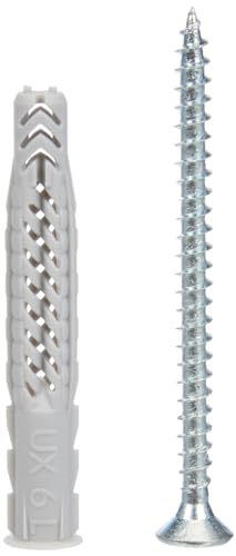 fischer 94759 UX Wall Plugs with Rim and Screws, 6x50mm, Grey, Box of 25