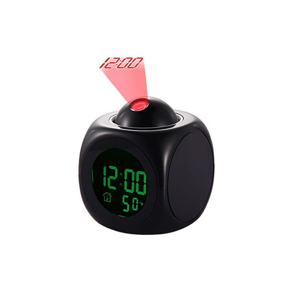Shanrya Pasamer LED Alarm Clock, Multi-function Digital LCD Wall Projection Voice Talking Temperature Display Black Clock