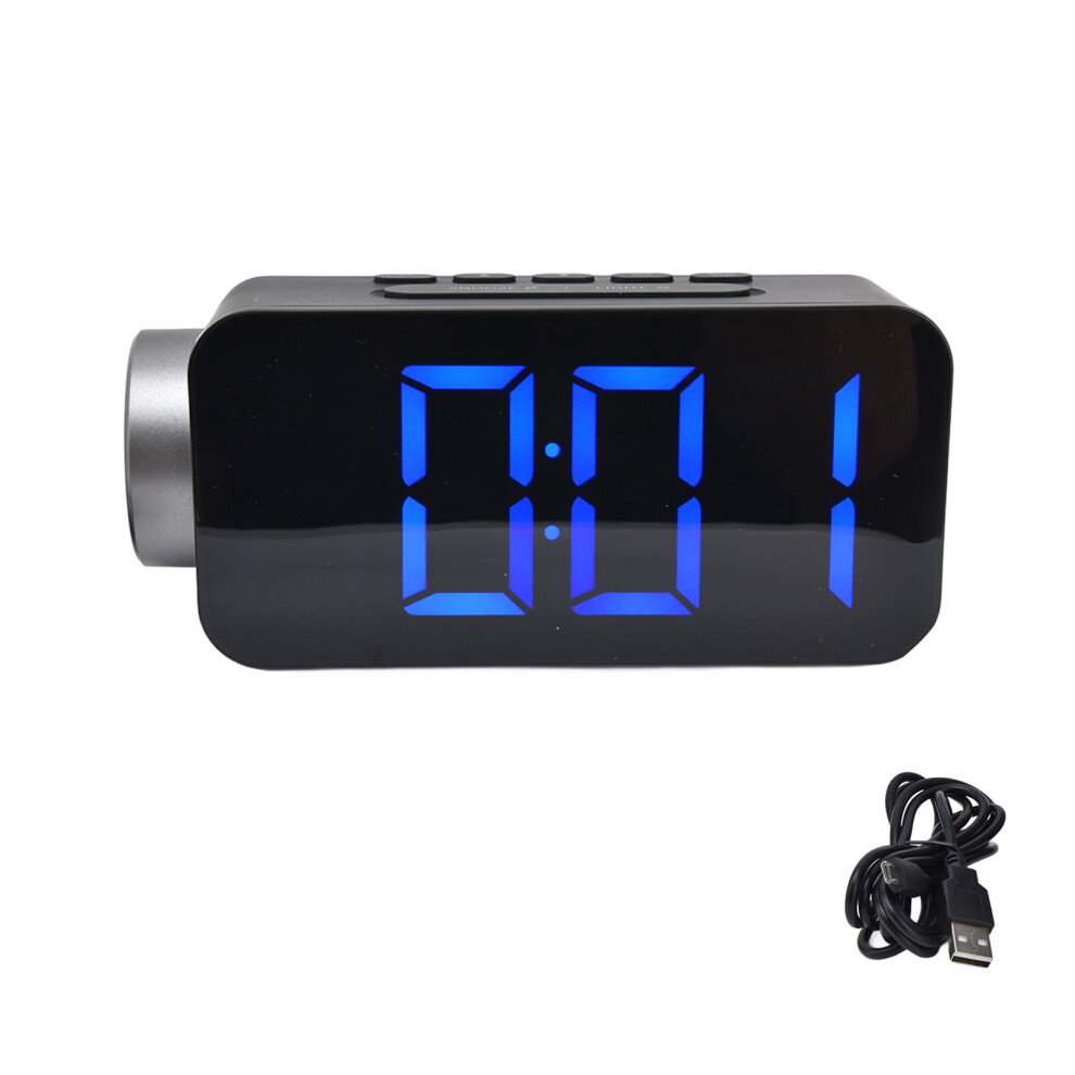 Blue Font Digital Alarm Clock 180° Projection On Ceiling Wall USB Powered Al UO