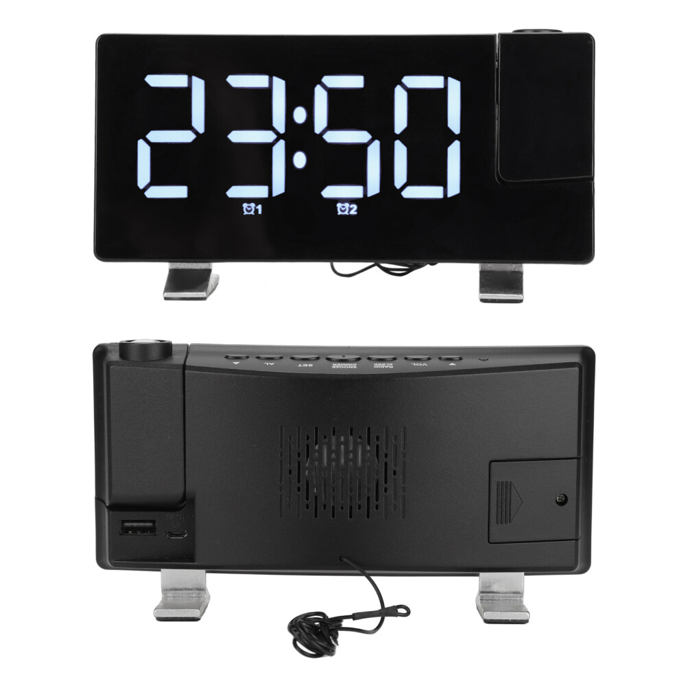 Projection Ceiling Wall Clock Digital Projector Radio Alarm Clock FM Radio Clock 7.1" Wide Curved Screen LED Digital Desk/Shelf Clock USB Charging