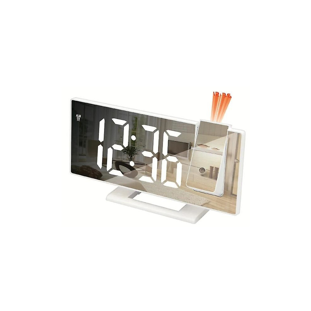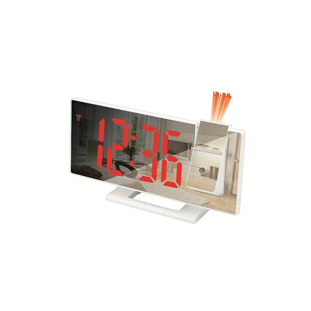 Projection Alarm Clock, Rotatable Projector Display for Wall or Ceiling, Brightness LED with Auto Light , Mirror Display Design for Daily Use, White