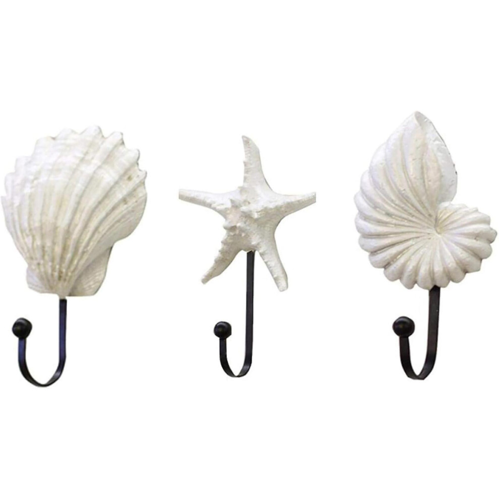 Wall Hooks Hooks, 3pcs Multifunctional Sea Shell, Starfish And Conch Hook, Simple Ocean Decorative Wall Rack For Home, Coats, Hats, Bags, Towels