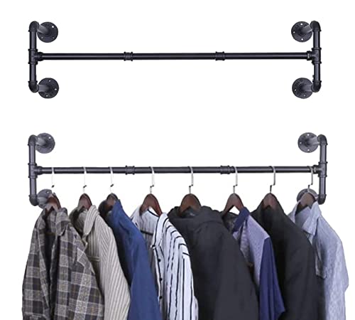 NAIMP Industrial Pipe Clothes Rail Wall Mounted Black, Set of 2 Clothing Rack Clothes Hanging Rail, Heavy Duty 3.4ft Garment Rack Wall Clothes Rack for Coats, Jackets, Dresses, Shirts (2Pcs)
