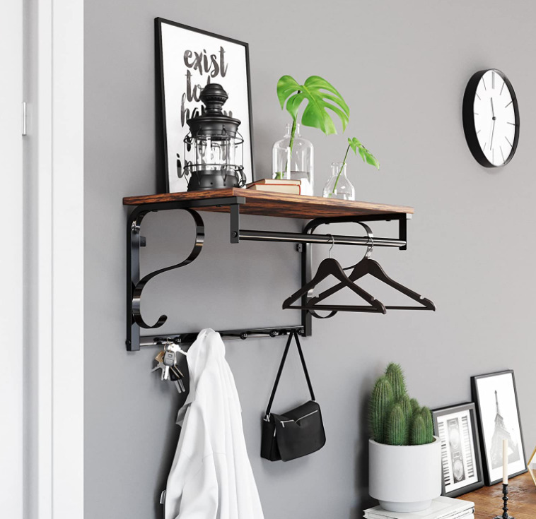 Industrial Coat Rack Wall Mounted Storage Vintage Hanging Rail Rustic Metal Hook