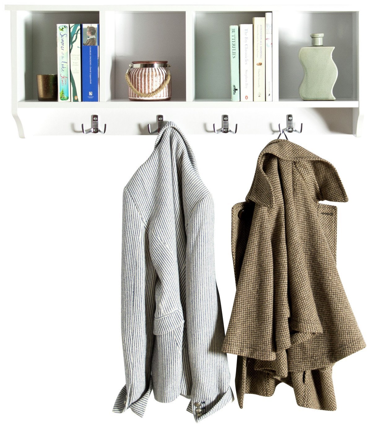 'New England' Wall Mounted Hall Rack With Storage And 3 Coat Hooks White