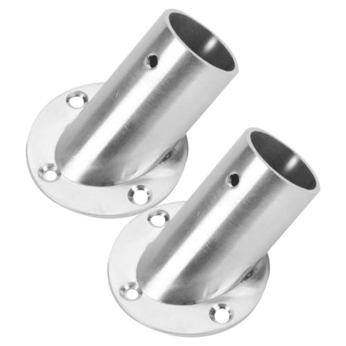 PartyKindom Pole Socket Closet Rod Support 90-Degree Angled Wardrobe Rail Bracket Stainless Steel High Foot Corner Mount with Flange Fixing Base for Wall Hanging Clothes Rail 2Pcs