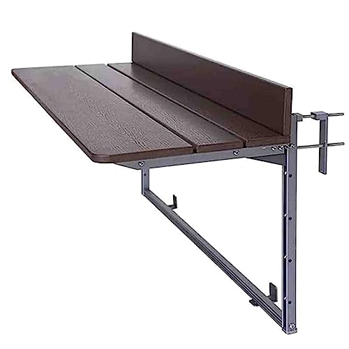 Folding Balcony Bar Table - Balcony Railing Hanging Half Table Deck Desk, 5 Adjustable Heights, Wall-Mounted Hanging Rail Table For Garden, Terrace, Outdoor Aluminium Profile Side Tables (Brown 80*37