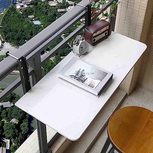Portable Balcony Bar Table For Railings, Hanging Adjustable Deck Table Side Tables/Wood Folding Floating Shelves - 60-120Cm Wall-Mounted Rail Hanging Tables Desk For In/Outdoor Use (White 80*35Cm)