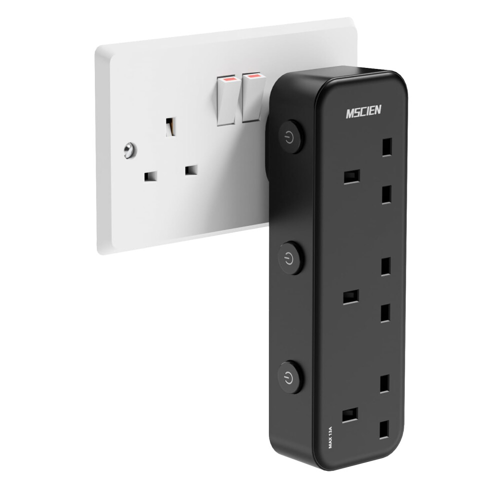 Mscien Plug Adapter, 3 Way Plug Extension Socket with Individually Switched, Multi Plug Adaptor Black Socket Extender, Wall Socket Extension for Home