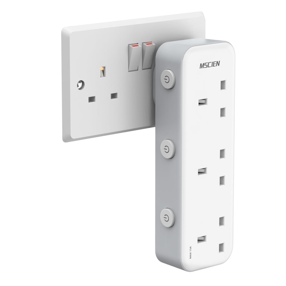 Mscien Plug Extension Socket, Multi Plug Adaptor 4 Way with Individual Switches, Adapter plug UK Turn 1 into 4, Wall Socket Plug Extender without Cable