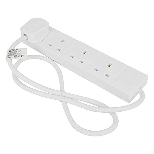 Mercury 4 Gang Extension Lead 2.0 Metre White UK 13 Amp Rated 4 Socket Extension Lead, 4 Way Power Strip, Wall Mountable Cable Extension for Home or Office use, full Copper Conductor