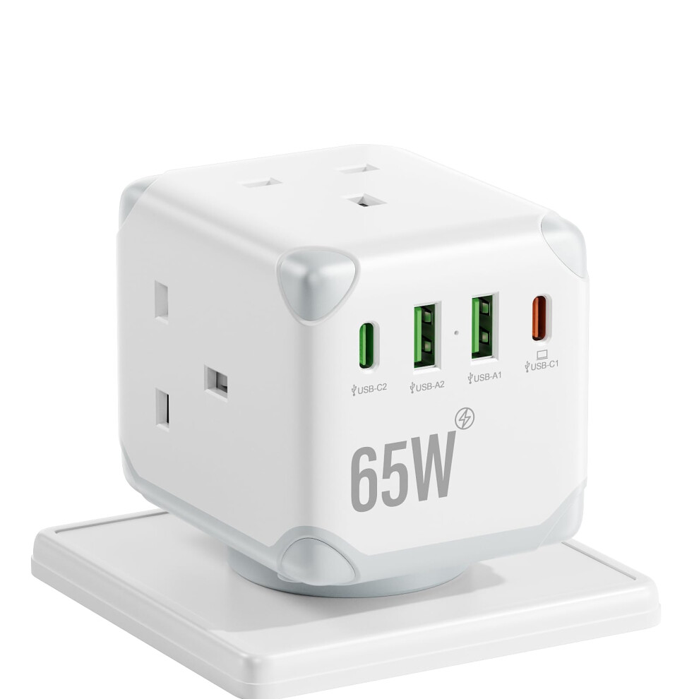 Cube Plug Adapter with USB C PD65W, 3 Way Multi Plug Adaptor with 2 USB-A & 2 Type-C Ports, UK Wall Socket Extension with 13A Fused Plug, Compact Cub