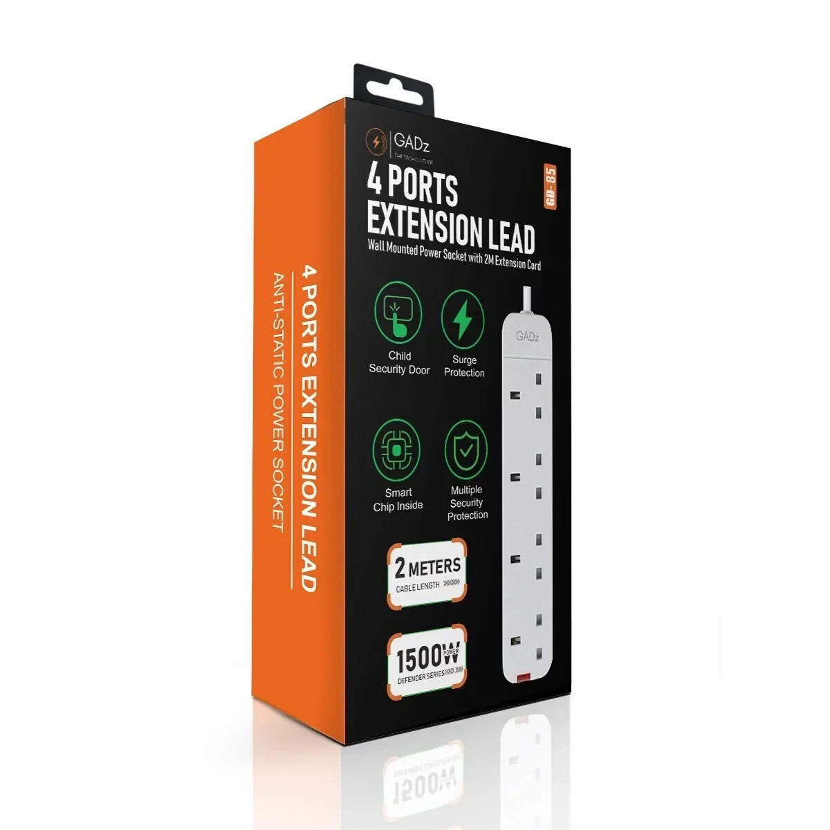 Surge Protected Extension Lead 4 Gang Wall Mounted Socket 2M Extension Cord UK