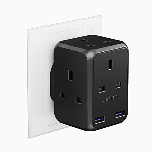 JSVER Plug Adapter USB with 4 Way Sockets 13A Cube Extension Plug Multi Plug Extension Wall Socket Wall Plug Extender for Home, Office Black