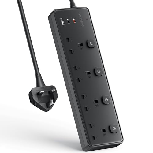 Extension Lead with 3 USB Slots(2 USB C), 4 Way Plug Extension Socket, 1.8M Wall Mount Socket Extension Cable, Multiplug Power Strip for Home, Office, School Supplies