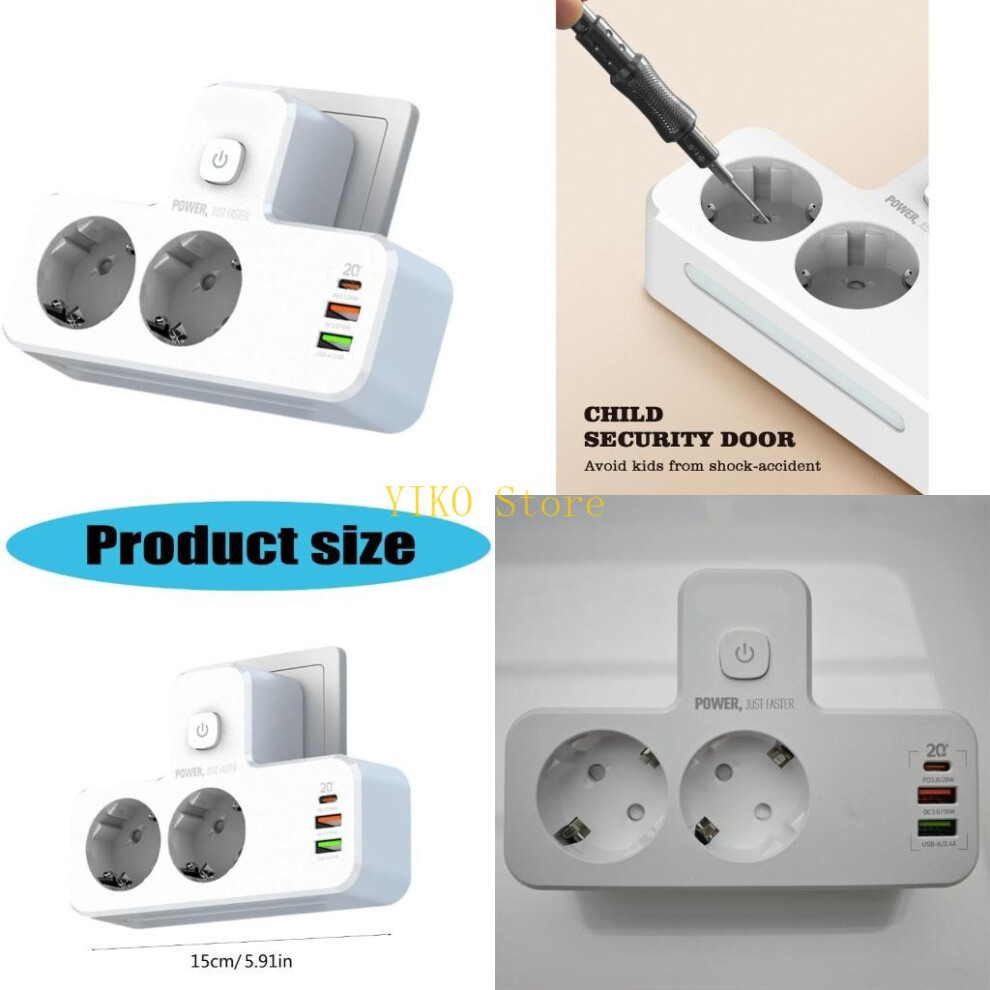 USB Type C Charger 4 Ports Wall Charging Station Hub Adapter For Extension Socket Fast