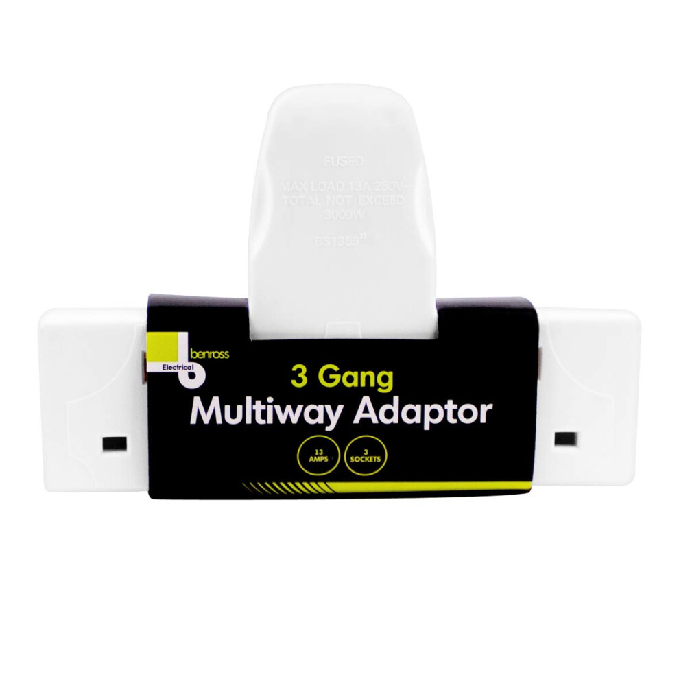 Benross 45090 Standard 3 Way Wall Adaptor Socket / Simple Wall Socket Extension / Compact & Lightweight Design / 3 UK Plug Sockets