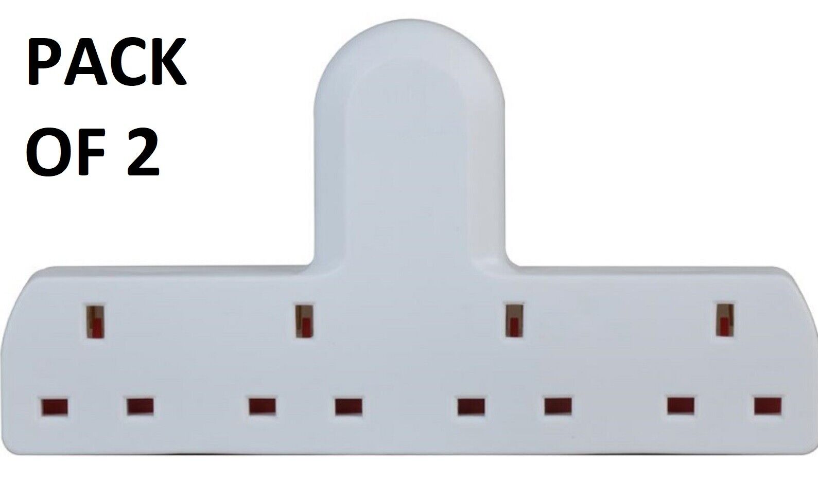 2x 4 Gang Way Wall Socket Extension Adaptor 13A UK Plug Adapter