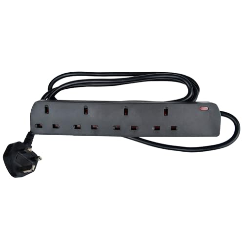 Mercury 4 Gang Extension Lead 2.0 Metre Black UK 13 Amp Rated 4 Socket Extension Lead, 4 Way Power Strip, Wall Mountable Cable Extension for Home or Office use, full Copper Conductor