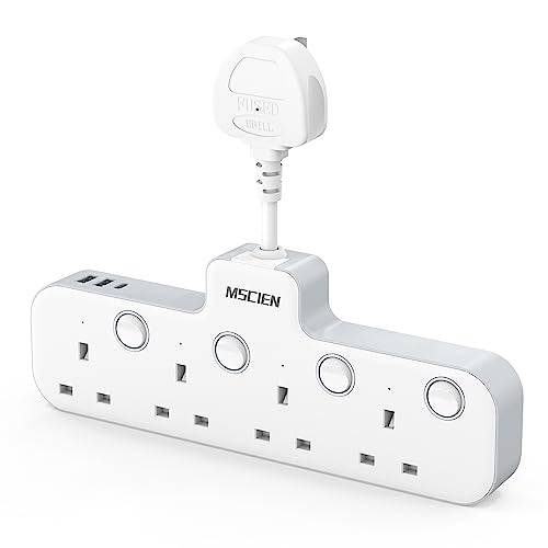 Mscien Multi Plug Extension Socket with USB, 4 Way Plug Adapter, Hanging Plug Extender with Switches for Home, Office, Multiplug Wall Socket Extension