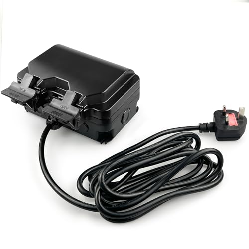 Outdoor Extension Lead Waterproof 3m External Plug Sockets IP66 2 Gang Black 13A Outside Fused Wall Switched Weatherproof 2 Way Double Power Garden Electrical Socket Cover Box with 3m Extension Cable